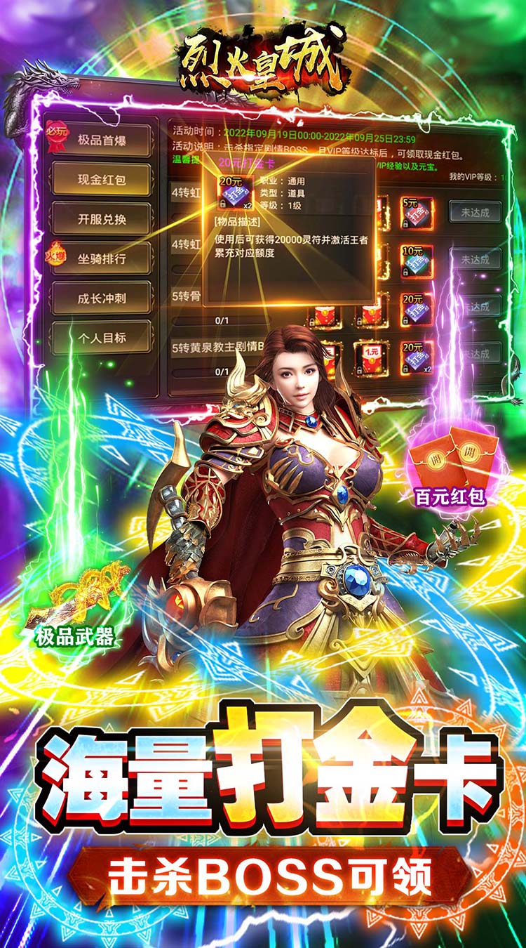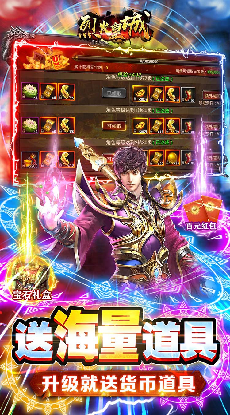官方下载 大小:190 MB 下载:3256次 烈火皇城(魂环热血打金服) 支 持:苹果 分 类:游戏中心 大 小:190 MB 版 本:1.3.6 评 分: 开发者:梨子游戏 下载量:3256次 发 布:2020-03-14 09:47 手机扫码免费下载 #烈火皇城(魂环热血打金服)截图 #烈火皇城(魂环热血打金服)简介 烈火皇城(魂环热血打金服)送VIP10,充值比例1:1000,送128888灵符烈火皇城继承了复古传奇经典、情怀玩法,融入移动化创新内容和玩法。让玩家可以在经典的玛法大陆闯荡,通过日常任务获得足够的资源,确保个人快速发展,一起来成为全服最强的沙巴克城主。创角送神装+百万绑元,更有大量货币免费领取,诚邀您王者归来,再战传奇!上线送vip10+天龙装备+128888灵符+百元红包